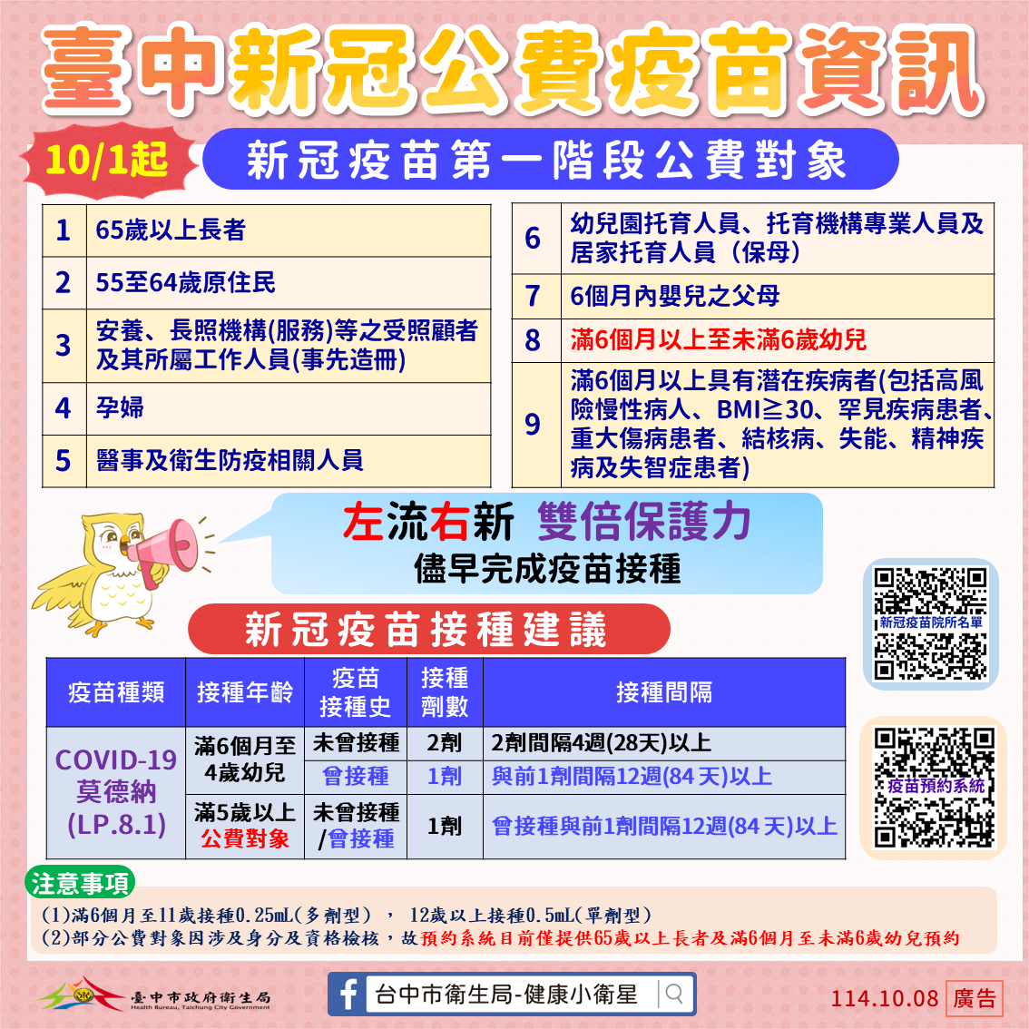 💖 10/1起 新冠疫苗 #第一階段公費對象如下: