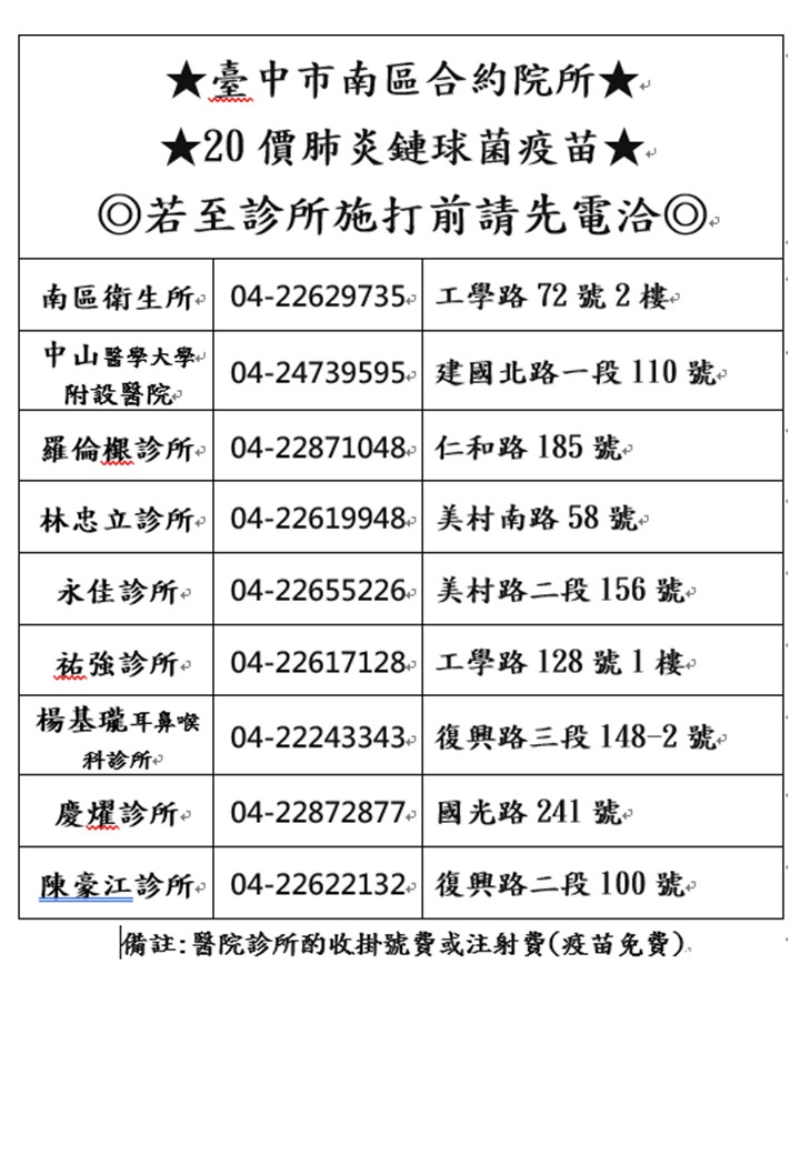 ☆南區衛生所施打時間: